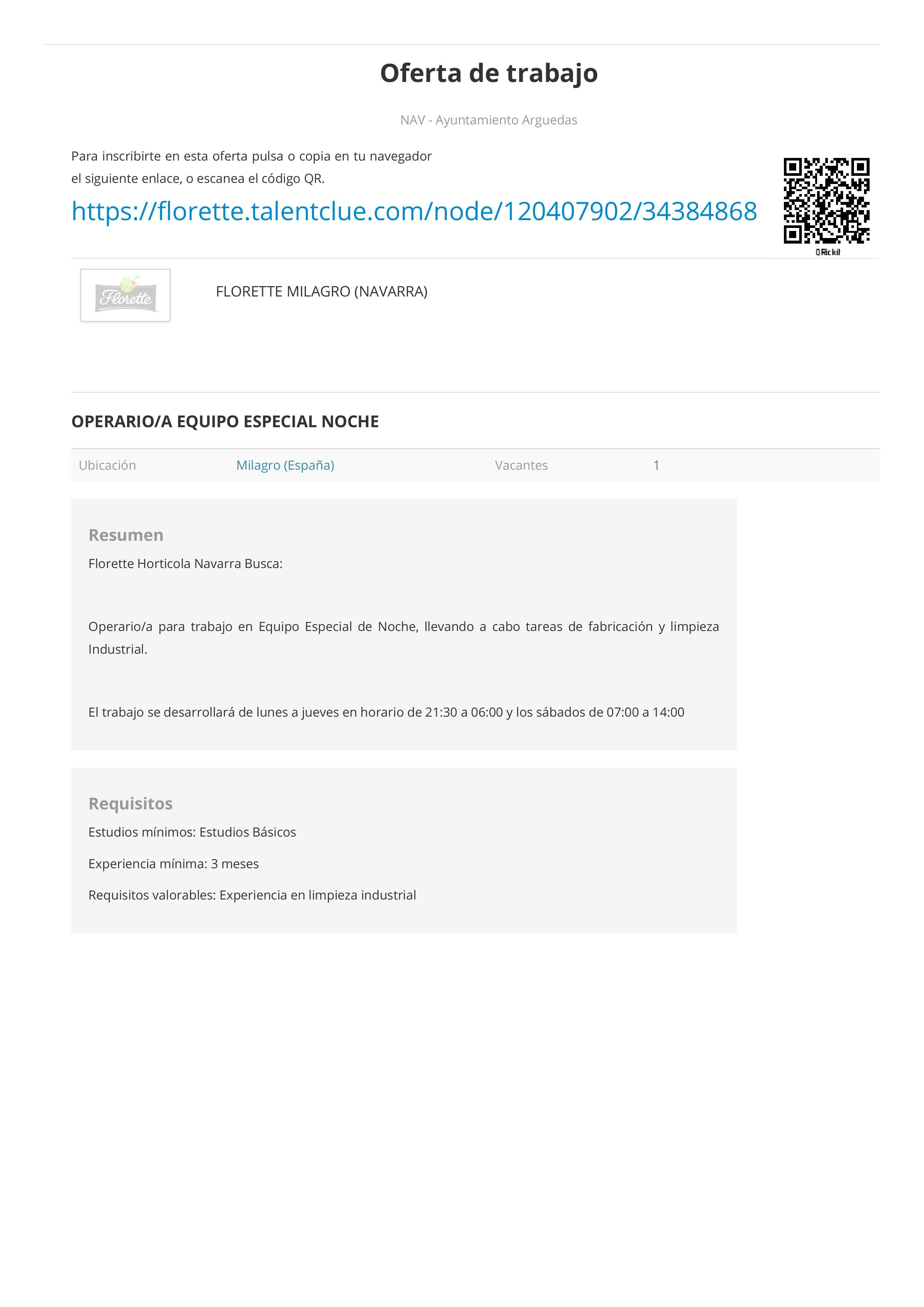 Ubicación Milagro (España) - Vacantes: 1